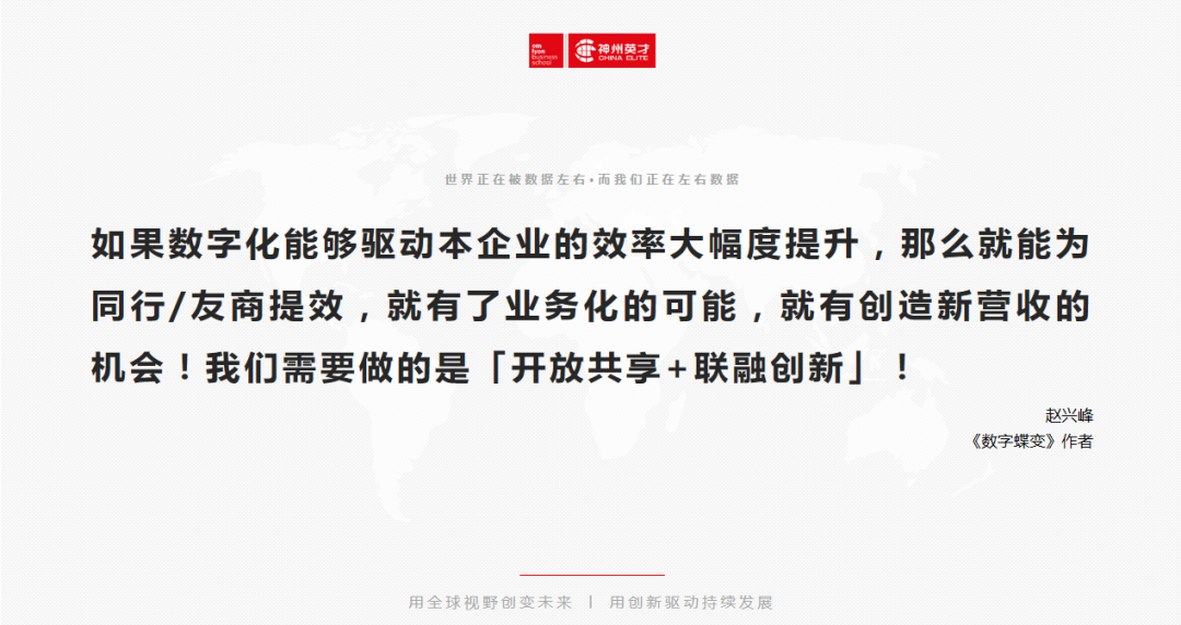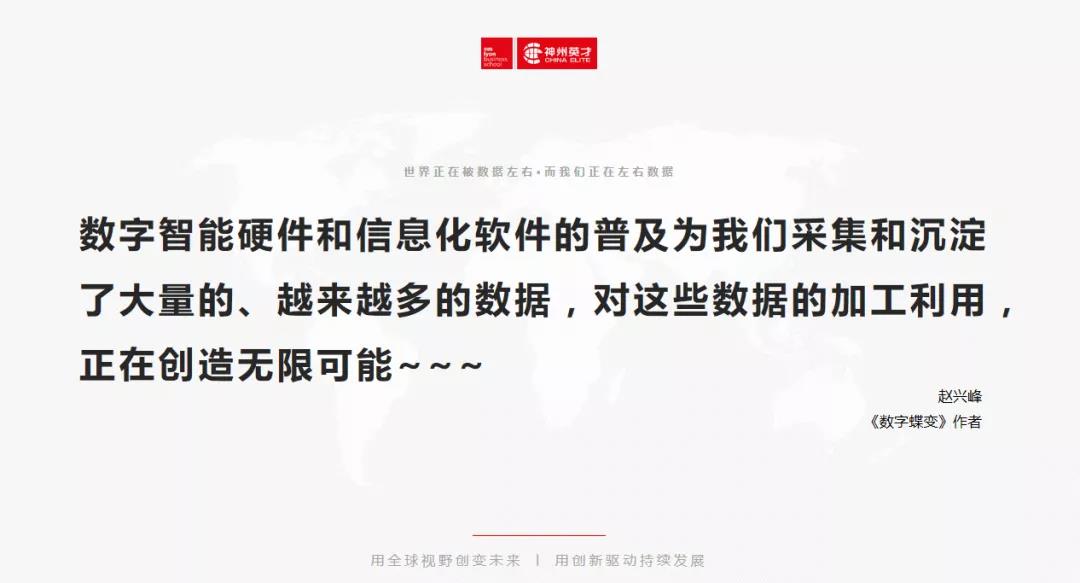 “顛覆,DT讓企業更聰明,改變著企業生存方式、商業模式、思考方式”,“數據技術趨向成熟、平民化讓數據資產成為新生產要素和競爭要素,更高維度競爭優勢”,“無論經濟環境、還是社會人文環境、還是技術環境變化越來越快,不確定性成為常態。"