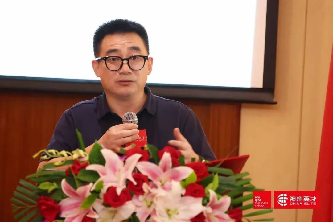 △2021年,在法國里昂商學院-神州英才全球創新管理EMBA課程研修班開學典禮上華戍防務總經理許懷陽作為新生代表演講