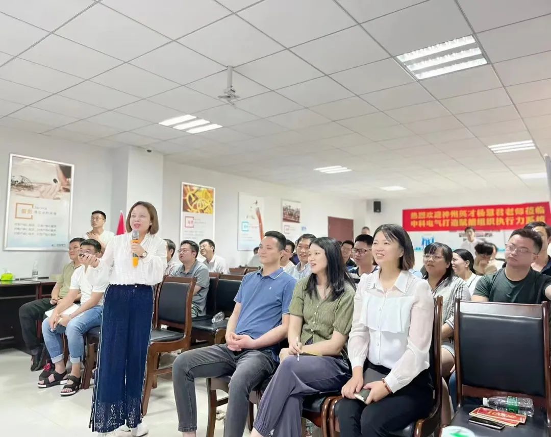 近期,神州英才受邀湖南中科電氣股份有限公司開展賦能組織執行力系統內訓。課程由神州英才集團副總裁、首席4R運營官、高級管理顧問、高級講師楊慧君主講。