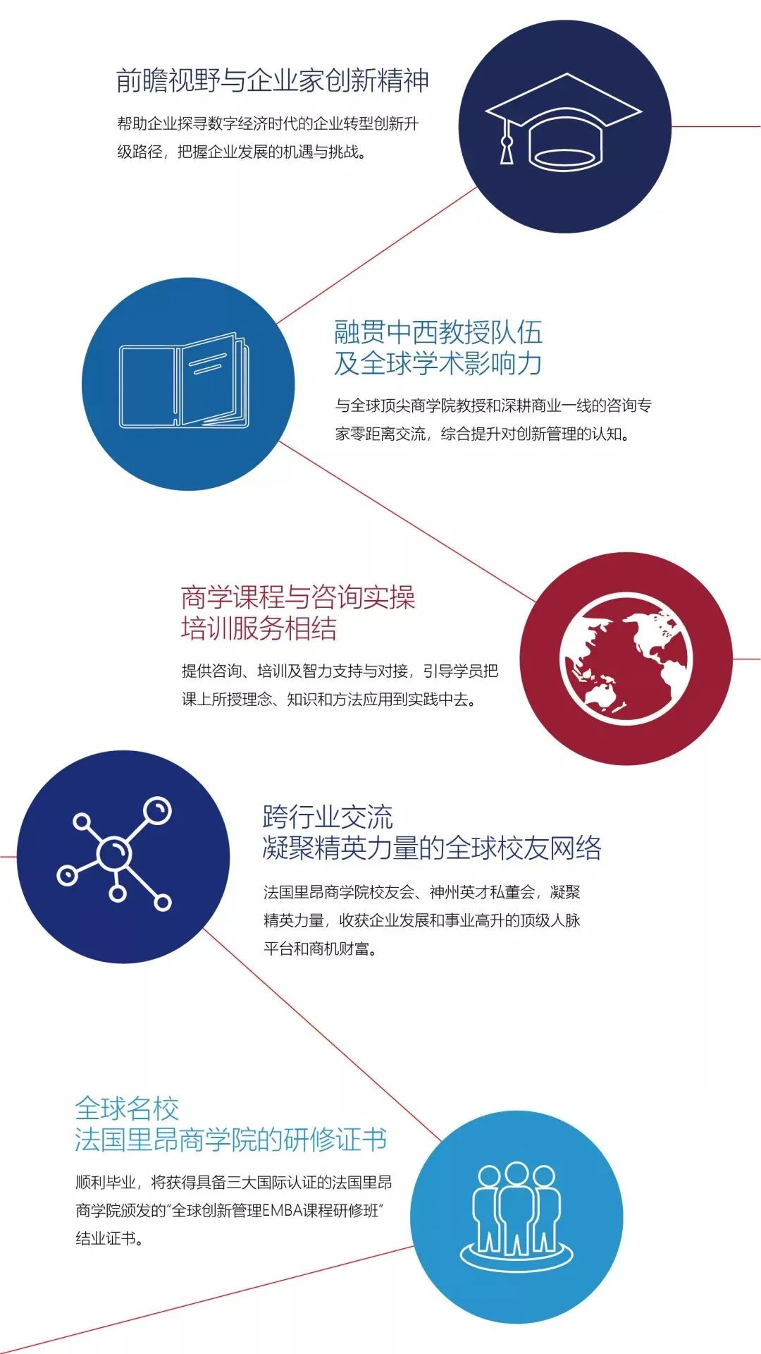 ![]() 法國里昂商學院-神州英才全球創新管理EMBA課程研修班,依托法國里昂商學院百年的經濟及管理理論沉淀,憑借神州英才20余年專業歷練、萬余個咨詢培訓實操案例經驗;以國際前沿的管理思想,升華中國本土商業實踐,打造兼具全球廣度與中國深度的創新管理課程體系。